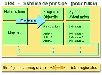 Pour atteindre cet objectif, une SRB réunit généralement un état des lieux, un programme décliné en plans d'action et un système d'évaluation et d'indicateurs, susceptible - lors de mises à jour périodiques - de réorienter ou prioriser certaines actions.