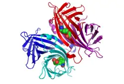 La streptavidine est une protéine de 52,8 kDa purifiée à partir de la bactérie Streptomyces avidinii. Les homo-tétramères de streptavidine ont une affinité exceptionnellement haute pour la biotine (également appelée vitamine B7, B8 ou H selon les nomenclatures). Ainsi, avec une constante de dissociation (Kd) de l'ordre de 10−14 mol/L[1], la liaison non covalente de la biotine à la streptavidine est l'une des plus fortes interactions connues dans la nature. La streptavidine est très utilisée en biologie moléculaire et bionanotechnologie en raison de la résistance du complexe streptavidine-biotine aux solvants organiques, dénaturants (ex : chlorure de guanidinium), détergents (ex : SDS, Triton), enzymes protéolytiques et températures et pH extrêmes.
