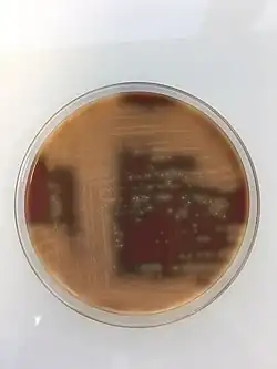 - Sur gélose chocolat + polyvitex, l'hydrolyse de l'hémoglobine en biliverdine se traduit par une zone d'éclaircissement jaune-verdâtre autour des colonies.