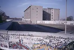 Avec la construction du mur de Berlin en 1961, la section appartenant au quartier de Mitte est devenue une partie de la bande de la mort. Un grand nombre de bâtiments sont détruits par la Seconde Guerre mondiale, ce n'est donc qu'à la fin des années 1980, avec l'Exposition internationale du bâtiment (de), que de nouvelles activités de construction ont lieu. La priorité est de promouvoir le logement social afin de « reconquérir les zones délaissées en zones résidentielles ». Dès 1986, le plan d'aménagement et d'aménagement du territoire prévoit la construction d'une « bande urbaine » avec une autoroute comme contournement sud. Cependant, cela n’est pas réalisé et il y a donc des espaces ouverts, dont certains sont désignés comme espaces verts[2]. Un bâtiment culturel et commercial est également prévu au sommet de l'îlot de la Wilhelmstraße, qui formerait le pendant de la maison de l'Association allemande des métallurgistes (de) de l'Alten Jakobstraße. Malgré une étude de conception réalisée par le lauréat Helge Bofinger (de) de 1983, le site reste initialement sous-exploité car le quartier de Kreuzberg ne voulait pas se passer de cet espace vert doté d'une aire de jeux. La maison Willy-Brandt (de) est ensuite construite sur ce site. Ce qui est réalisé, cependant, c'est la restauration du lotissement en bordure d'îlot entre la Stresemannstraße 38, 42-46 et la Wilhelmstraße 131 et 136-139, qui prévoit un lotissement de passage comprenant 97 appartements, dont une maison avec douze appartements pour personnes âgées et un salle commune. En outre, une maison de douze appartements pour personnes souffrant de troubles spastiques, une salle commune avec un atelier et quatre extensions d'appartements ont été construites. Le développement prévu sur la place municipale autour de la Hallesche Straße, de la Großbeerenstraße et de la Stresemannstraße sur la base de la Schinkelplatz avec une « correspondance visible avec le monument de Kreuzberg (de) » n'est pas non plus réalisé au profit d'un autre espace ouvert, l'actuelle Ida-Wolff-Platz[3].