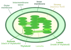 Le pH du stroma augmente au cours de la photosynthèse en raison du pompage des protons vers le lumen des thylakoïdes sous l'effet de la lumière[1].