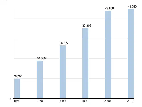 Sa population était estimée à 44 750 habitants lors du recensement de 2010, ce qui donne une densité de 687,2 hab./km2.