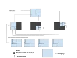 Les pages dites régions pointent toujours vers des pages fils et ne peuvent pas être vides. Les pages dites points sont les feuilles de l'arbre.