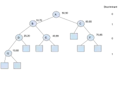 Si un nœud possède éléments, alors ces derniers sont repartis dans fils, chacun représentant une fraction égale de l'espace couvert par .
