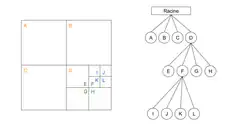 Le Quad-Tree permet de diviser récursivement l'espace en parties. Le Quad-Tree est utilisé pour un espace à 2 dimensions, cependant le concept peut s’étendre à dimensions.