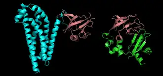 - Les domaines SH2 et SH3 impliqués dans des reconnaissances protéine-protéine de cascades de transduction du signal.