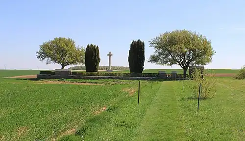 Ce cimetière est situé en plein champ, à 1,5 km au sud du village. On y accède par un chemin rural puis un petit sentier engazonné d'une trentaine de mètres.