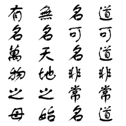 - ↑ Cet exemple est un fragment de brouillon préparatoire à une calligraphie de la peintre et calligraphe Iris Yawen Hsu (徐雅雯, Xú Yǎwén). Tracé sans prétention, il illustre bien le caractère fluide et abrégé de ce style, qui reste cependant parfaitement lisible.