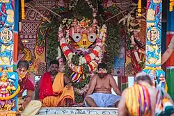 Subhadra est l'une des trois divinités vénérées au temple Jagannath à Puri, avec Krishna (sous le nom de Jagannatha ) et Balarama (ou Balabhadra). L'idole de Subhadra est une souche de bois sculptée et décorée avec de grands yeux ronds et un visage symétrique de couleur jaune, contrastant avec le teint noir de Jagannath et le teint blanc de Balabhadra. Elle est parée de vêtements rouges et noirs et présente des éléments iconographiques similaires à ceux de la déesse Bhubaneswari qui comprend un lasso (pacha) et un aiguillon éléphant (ankusha). L'un des chars du Ratha Yatra annuel lui est dédié et s'appelle Dwarpadalana, symbolisant la destruction du mal[15]. En dehors de cela, on pense également qu'elle est vénérée par certaines communautés d'Odisha, du Bengale occidental, du Gujarat et du Bangladesh[16].
