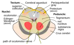 Coupe transversale du mésencéphale au niveau des colliculi supérieurs.