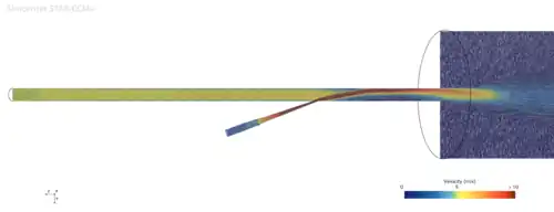 On observe donc que la pression est la plus faible là où la section est la plus petite et ainsi cette différence de pression crée une aspiration qui attire les sédiments dans le tuyau. Il est probable que l’aspiration soit effectivement due à un effet venturi important et au déplacement de la masse d’eau dans le tube rigide.