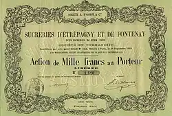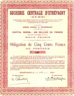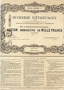 Le est créée la sucrerie d'Étrépagny [5] par Arthur Louis Lebœuf vicomte d'Osmoy, chez maître Charles-Victor Amy notaire à Paris-Passy; il crée la société A. d'Osmoy & Cie qui prend la dénomination de sucrerie dite d'Étrépagny. Jean-François Cail est le plus gros actionnaire, possédant le quart des actions de la société.