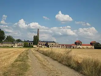 Construite sur la route royale, à l'écart du village, la sucrerie est approvisionnée en betteraves par la ferme de Fresnel, d'une superficie de 160 hectares, exploitée par Thirial. Les bâtiments de cette première sucrerie, encore visibles en partie aujourd'hui, incluent les deux conciergeries, à l'entrée de l'usine, le puits et le bâtiment principal en brique, dite « Halle Thirial », au centre de la fabrique. La « Halle Thirial » est l'un des plus anciens bâtiments industriels en milieu rural encore debout en France[3],[5].