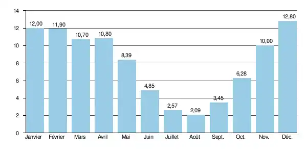 Durant cette période et en ce lieu, le module y était de 7,97 m3/s.