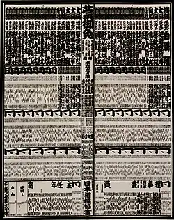 Le tableau de classement, appelé banzuke[27], est publié à l'approche de chaque honbasho. Pendant le tournoi, l'objectif du rikishi est d'obtenir plus de victoires que de défaites :