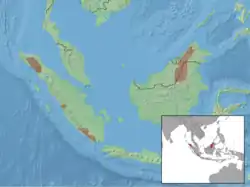 L'espèce est présente à Sumatra et Bornéo en Indonésie, Malaisie et probablement à Brunei[1].