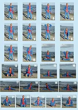 - Jung Ki Dan Boup - ceinture blanche puis blanche et jaune : « Se Recentrer » → 2 tableaux de 25 postures