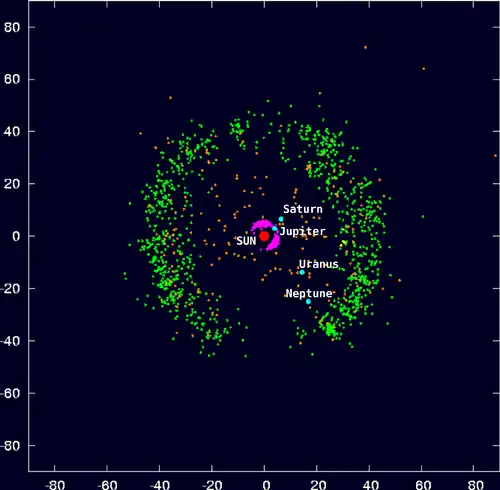 C'est-à-dire les quatre classes principales de TNOS, leur structure orbitale et plusieurs autres caractéristiques sont reproduites. Cela inclut aussi une explication des TNOS qui ont des orbites particulières, comme Eris, 2004 XR190, 2000 CR105 et Sedna.