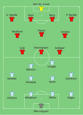 La Lazio remporte la Supercoupe sur le score de 1-0, le but de la victoire étant inscrit par l'attaquant chilien Marcelo Salas durant la 35e minute. Le match s'est déroulé au Stade Louis-II de Monaco, devant 14 461 spectateurs.