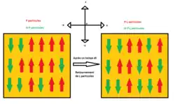 . - Si toutes les particules sont identiques et que la température est assez élevée (T ≳ KV/kB), alors quelle que soit l'orientation des axes faciles: