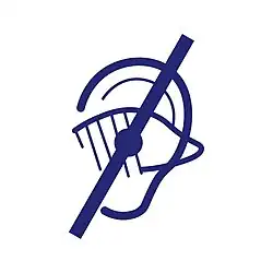 Le logo « surdicécité » représente la superposition de la surdité (oreille barrée) et de la cécité (œil barré).