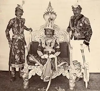 Le roi entouré de deux de ses gardes, photographie prise par le délégué britannique Clarence Comyn Taylor en 1862-1865.