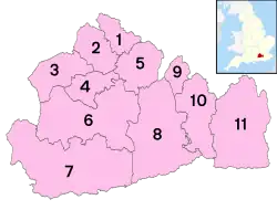 Le Surrey comprend onze circonscriptions électorales :