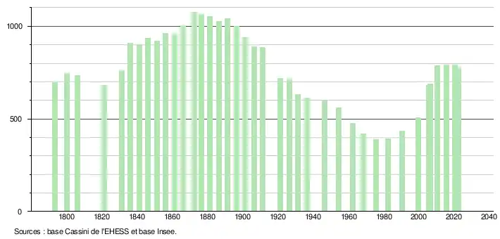 - ↑ Fiches Insee - Populations de référence de la commune pour les années 2006, 2007, 2008, 2009, 2010, 2011, 2012, 2013, 2014, 2015, 2016, 2017, 2018, 2019, 2020, 2021 et 2022.