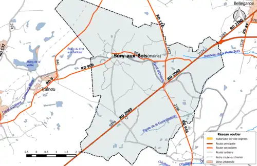 Au , Sury-aux-Bois est catégorisée commune rurale à habitat dispersé, selon la nouvelle grille communale de densité à sept niveaux définie par l'Insee en 2022[26]. Elle est située hors unité urbaine[27]. Par ailleurs la commune fait partie de l'aire d'attraction d'Orléans, dont elle est une commune de la couronne[Note 2],[27]. Cette aire, qui regroupe 136 communes, est catégorisée dans les aires de 200 000 à moins de 700 000 habitants[28],[29].