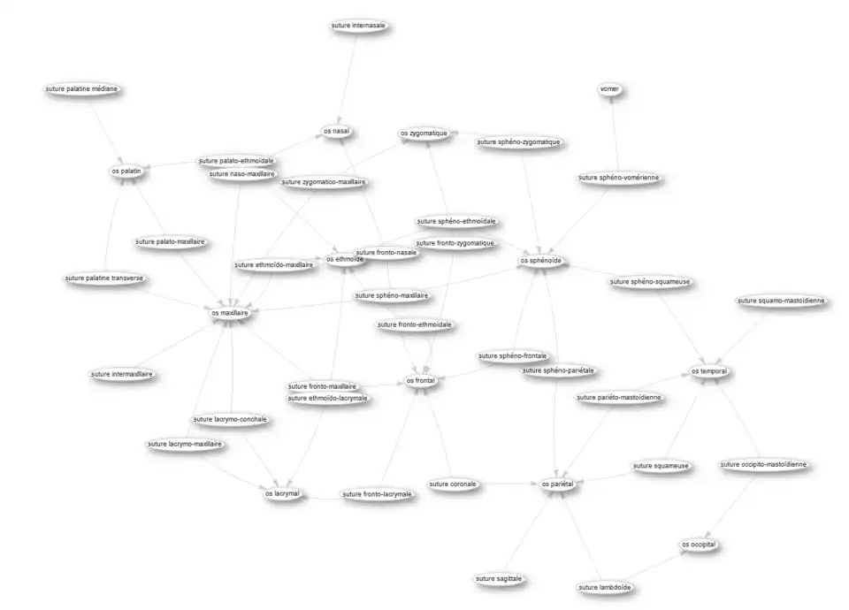 | Suture fronto-nasale | partie nasale de l'os frontal | os nasaux | ||