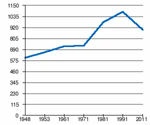 - 1 2 (sq) « Évolution de la population 1948-2011 », sur pop-stat.mashke.org (consulté le ).