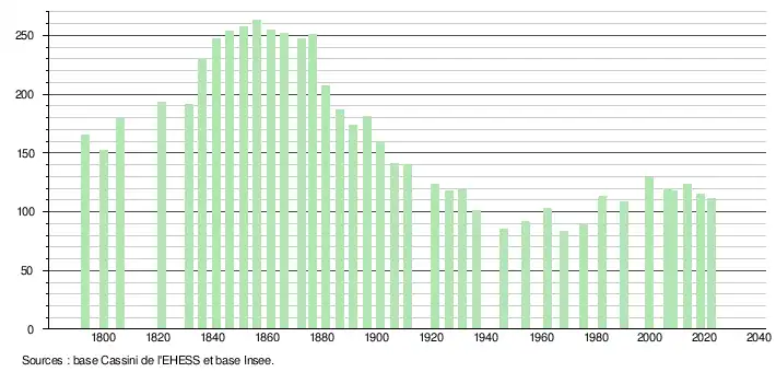 (Sources : Ldh/EHESS/Cassini jusqu'en 1999[25] puis Insee à partir de 2006[26].)