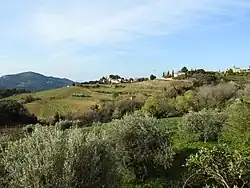 L'occupation des sols de la commune, telle qu'elle ressort de la base de données européenne d’occupation biophysique des sols Corine Land Cover (CLC), est marquée par l'importance des forêts et milieux semi-naturels (50,1 % en 2018), une proportion sensiblement équivalente à celle de 1990 (50,7 %). La répartition détaillée en 2018 est la suivante : forêts (50,1 %), cultures permanentes (38,8 %), zones agricoles hétérogènes (11,1 %)[13]. L'évolution de l’occupation des sols de la commune et de ses infrastructures peut être observée sur les différentes représentations cartographiques du territoire : la carte de Cassini (XVIIIe siècle), la carte d'état-major (1820-1866) et les cartes ou photos aériennes de l'IGN pour la période actuelle (1950 à aujourd'hui)[Carte 1].