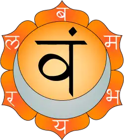 Le bija mantra de ce chakra est « vam ». Six autres syllabes hindous sont associées à chaque pétale de cette roue : bam, bham, mam, yam, ram, lam.