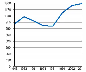 - 1 2 (sr + en) « Livre 20 : Vue d'ensemble comparative de la population en 1948, 1953, 1961, 1971, 1981, 1991, 2002 et 2011, données par localités) » [PDF], pages du recensement de 2011 en Serbie - Institut de statistique de la république de Serbie, (consulté le )