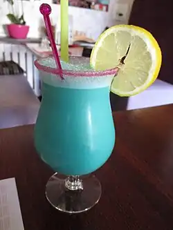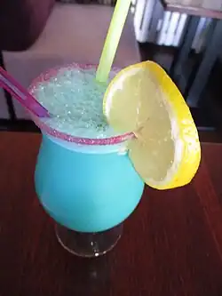 Variante entre autres des Piña colada, Blue Hawaii, Blue Lagoon, Ocean breeze, Blue lady, Train bleu... sa couleur bleu piscine est donnée par le curaçao bleu[2].