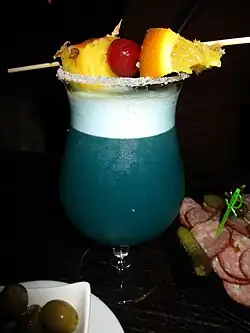 | Ingrédients communs | Crème de noix de coco, curaçao bleu, jus d'ananas |
