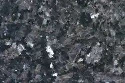 La syénite est une roche magmatique plutonique grenue, de couleur grise, violacée ou rougeâtre[1]. Elle est composée principalement de feldspath alcalin, de biotite et de hornblende, et accessoirement (typiquement moins de 10%) de feldspaths plagioclases.