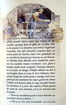 « Que tout cela est solitaire et triste ! Le regard enchanté de Sylvie, ses courses folles, ses cris joyeux, donnaient autrefois tant de charme aux lieux que je viens de parcourir ! C'était encore une enfant sauvage, ses pieds étaient nus, sa peau hâlée, malgré son chapeau de paille, dont le large ruban flottait pêle-mêle avec ses tresses de cheveux noirs. Nous allions boire du lait à la ferme suisse, et l'on me disait : « Qu'elle est jolie, ton amoureuse, petit Parisien ! Oh ! ce n'est pas alors qu'un paysan aurait dansé avec elle ! » Elle ne dansait qu'avec moi, une fois par an, à la fête de l'arc »