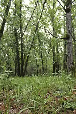 - La production d'herbe est décalée dans les bois par rapport aux prairies, grâce à l'effet parasol[3] (micro climat).