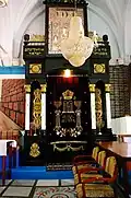 La bimah compte six marches symbolisant les six jours ouvrés de la semaine, le niveau supérieur représentant le shabbat. L'Arche sainte comporte trois sections et contient des rouleaux de la Torah rédigés par Abuhav lui-même et par Solomon Ohana de Fès.