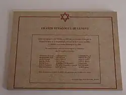 - ↑ La capacité de la synagogue est d'environ 340 places assises pour une communauté israélite affichant 86 chefs de famille membres en 1857, selon Plançon 2008, chapitre VIII et annexe II.