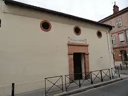 Au début du XIXe siècle, la communauté juive toulousaine est relativement réduite. Lors du recensement de 1807, la ville ne compte que 87 Juifs : elle ne peut donc pas être le siège d'un consistoire et dépend donc du consistoire de Bordeaux. À partir de 1812, elle est dirigée spirituellement par un rabbin provisoire. En 1837, elle s'installe dans une maison de la rue de la Colombette, dans le faubourg Saint-Aubin, un quartier qui se développe grâce à l'industrialisation entre les nouveaux boulevards et le canal du Midi. La maison, louée à un certain M. Gleyzes, se trouve à l'angle de la nouvelle rue Palaprat, percée trois ans plus tôt.