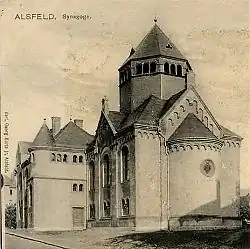 La synagogue d'Alsfeld, inaugurée fin 1905, a été détruite en 1938 lors de la nuit de Cristal comme la plupart des autres lieux de culte juif en Allemagne.