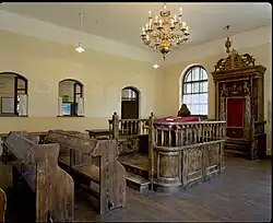 Au nord de cette grande salle, se trouve une salle plus petite, autrefois réservée aux femmes, donnant sur la salle principale par plusieurs petites fenêtres qui permettaient aux femmes de suivre l'office. Sur le mur ouest et sud de cette salle, sont conservés quelques fragments de la peinture originale sous forme de corniche. La salle d'étude du Talmud était auparavant située au grenier. À l'origine, on pénétrait dans la salle de prières principale par une autre porte située dans le mur sud.
