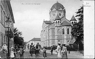 La synagogue de Bad Kissingen a été construite en 1902 ; comme la majorité des synagogues en Allemagne, elle sera détruite par les nazis en 1938.