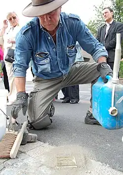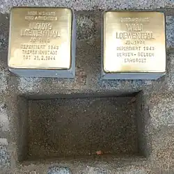 En , les sept premières Stolpersteine (pierre qui fait trébucher - pierre d'achoppement) ou pierre du souvenir, œuvre de l'artiste Gunter Demnig, sont encastrées dans la chaussée devant le dernier domicile connu de victimes du nazisme. À cette occasion, l'artiste s'est lui-même déplacé et a procédé à l'encastrement des premières pierres sur lesquelles sont fixées des plaques en laiton portant le nom des victimes[10].
