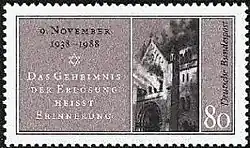 En 1988, pour l'anniversaire des cinquante ans de la nuit de Cristal, la Deutsche Bundespost (poste allemande) émet un timbre commémoratif représentant la synagogue de Baden-Baden en flamme, gravé d'après une photo de l'époque.