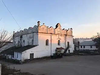 Construite en 1589, en tant que synagogue forteresse, ce qui en fait une des plus anciennes du pays. Pendant l'occupation turque elle fut une mosquée entre 1674 et 1699 ; un entrepôt durant l'époque soviétique.