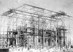 Dès les années 1870, la synagogue de la Salzstrasse s'avère trop petite. En 1881, la communauté juive décide donc d'acquérir un terrain situé dans la Frühlingsstrasse (aujourd'hui Luisenstrasse). La réalisation des plans de la nouvelle synagogue est confiée à l'architecte Ludwig Lévy de Karlsruhe, qui se spécialisera par la suite dans la construction de synagogues en Allemagne et en Alsace-Lorraine occupée: Barmen; Baden-Baden; Bingen-Am-Rhein; Thionville; Luxembourg; Pforzheim; Rastatt; Rostock; Strasbourg et Winnweiler, qui toutes seront détruites par les nazis. Les travaux de construction commencent en juin 1883 et la pose officielle de la première pierre a lieu fin octobre de la même année.